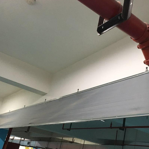 5、用不燃燒材料制成,從頂棚下垂不小于500 mm的固定或活動(dòng)的擋煙設(shè)施。活動(dòng)擋煙垂壁系指火災(zāi)時(shí)因感溫、感煙或其它控制設(shè)備的作 用,自動(dòng)下垂的擋煙垂壁。